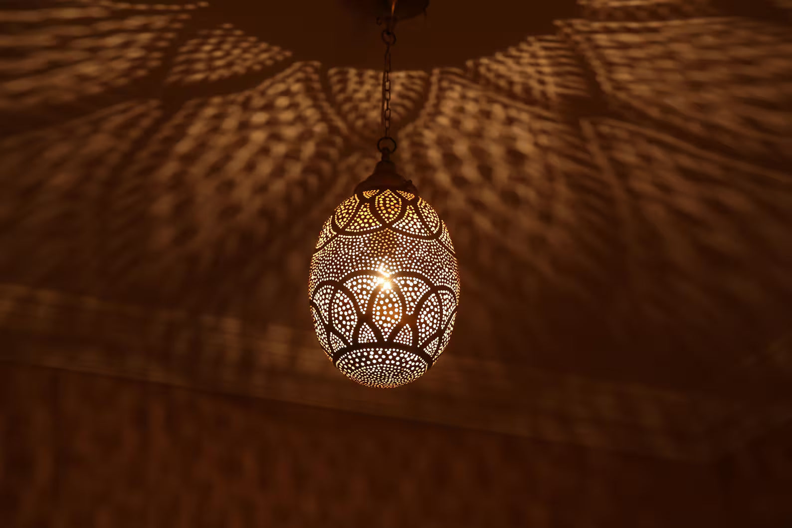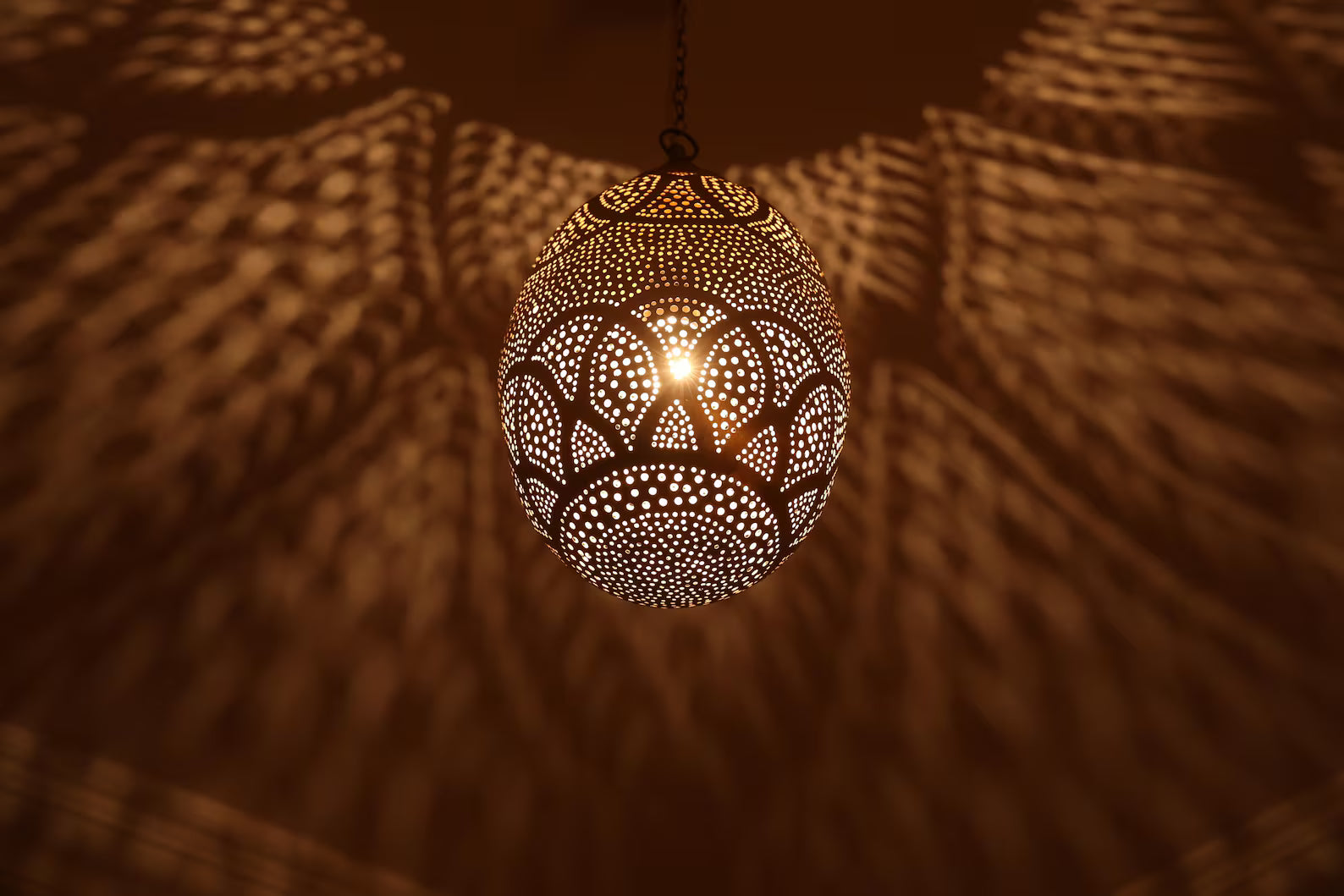 Handmade Moroccan Brass Pendant Light – Pierced Ceiling Lamp for Warm Shadows