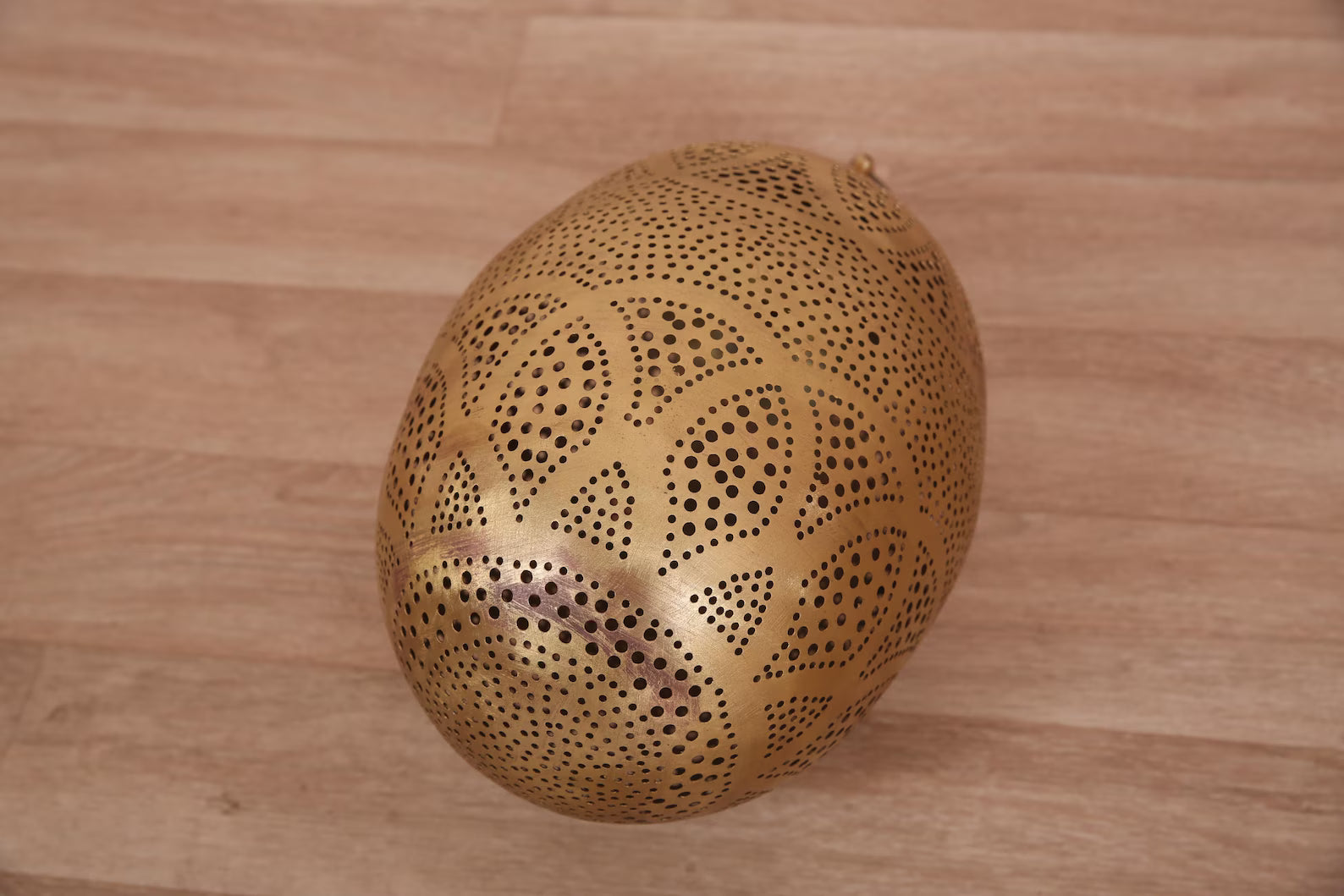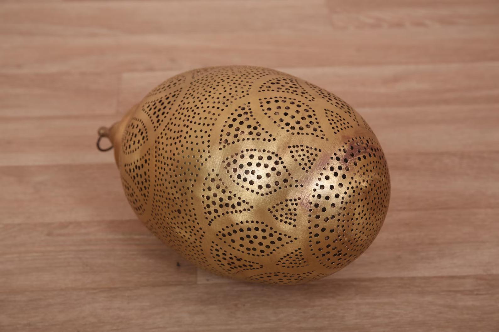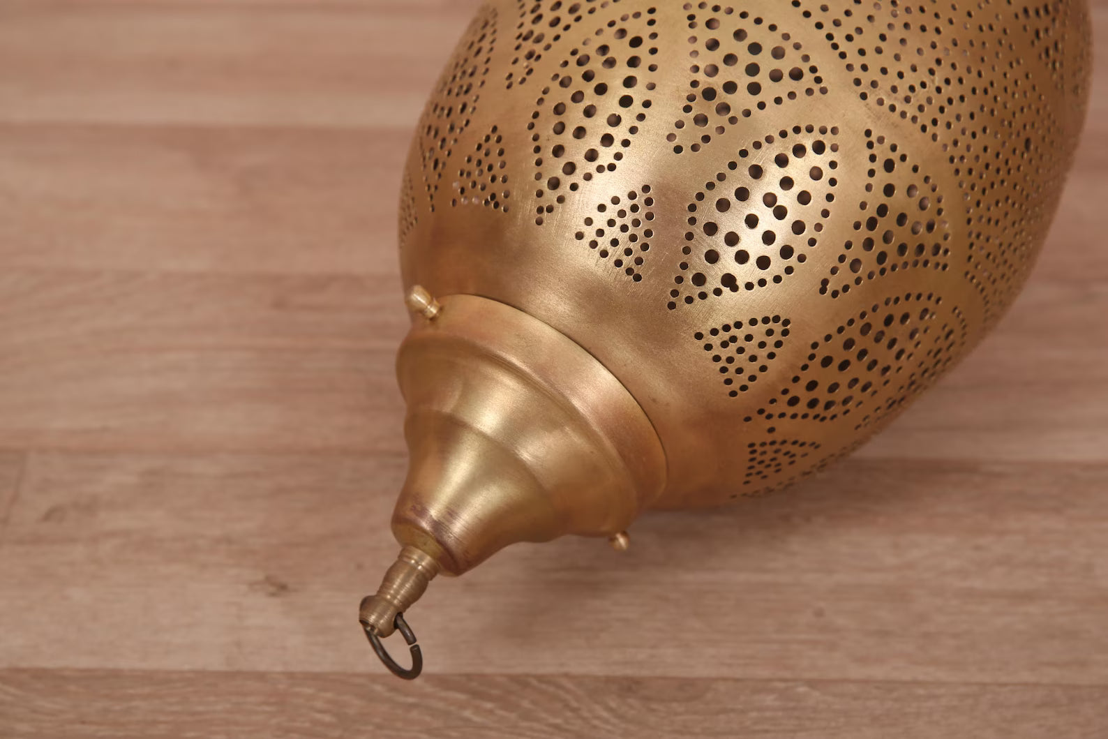 Bring timeless Moroccan beauty into your space with this handcrafted brass pendant lamp, pierced with elegant patterns that create stunning shadow effects when lit. Each piece is carefully hand-punched by our artisans in Marrakesh, blending traditional craftsmanship with a modern aesthetic.