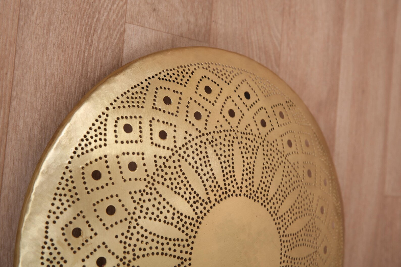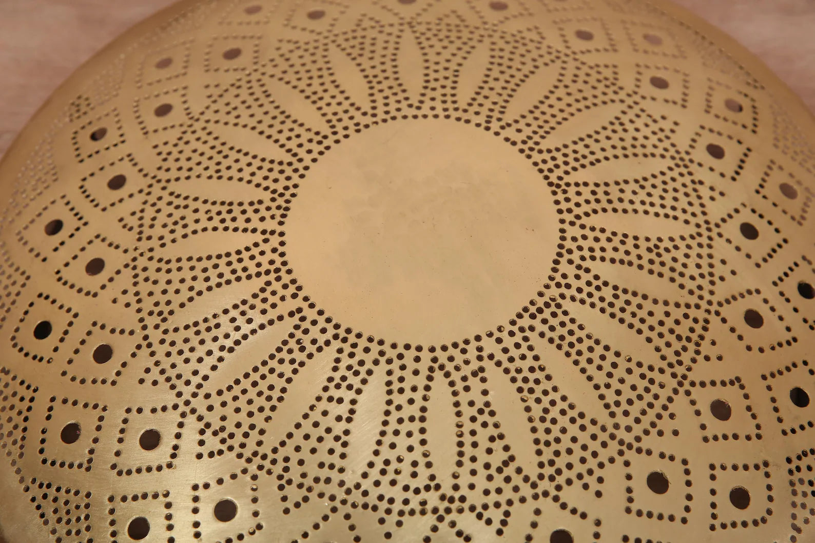 Transform your space with the warm, ambient glow of this handmade Moroccan brass wall sconce. Its stunning round design and intricate hand-punched geometric pattern cast magical reflections on your walls—perfect for creating a cozy and artistic atmosphere in any room.