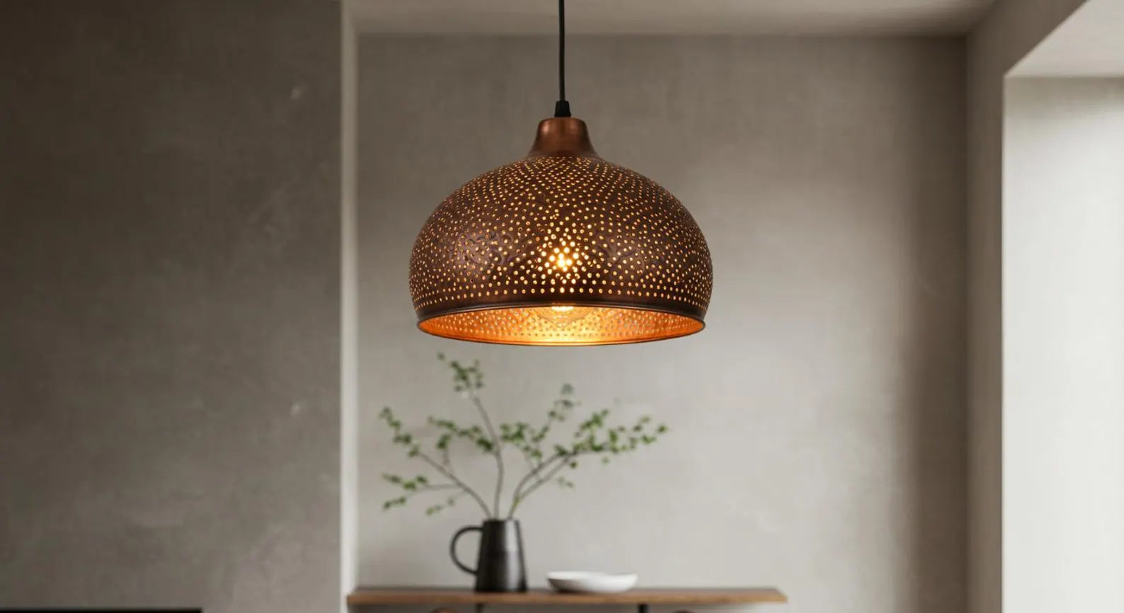 The dome-shaped shade casts a warm, ambient glow, perfect for creating a cozy atmosphere in any room – whether over your dining table, in your entryway, or as a statement piece in your living room.